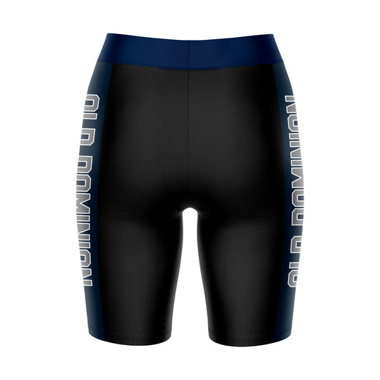 Old Dominion Monarchs Game Day Logo on Waistband and Navy Stripes Black Womens Bike Shorts by Vive La Fete