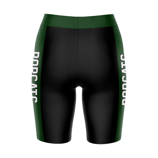 Ohio University Bobcats Game Day Logo on Waistband and Green Stripes Black Womens Bike Shorts by Vive La Fete