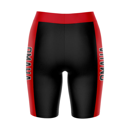Omaha Mavericks Game Day Logo on Waistband and Red Stripes Black Womens Bike Shorts by Vive La Fete