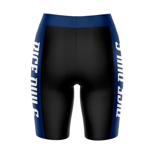 Rice University Owls Game Day Logo on Waistband and Blue Stripes Black Womens Bike Shorts by Vive La Fete