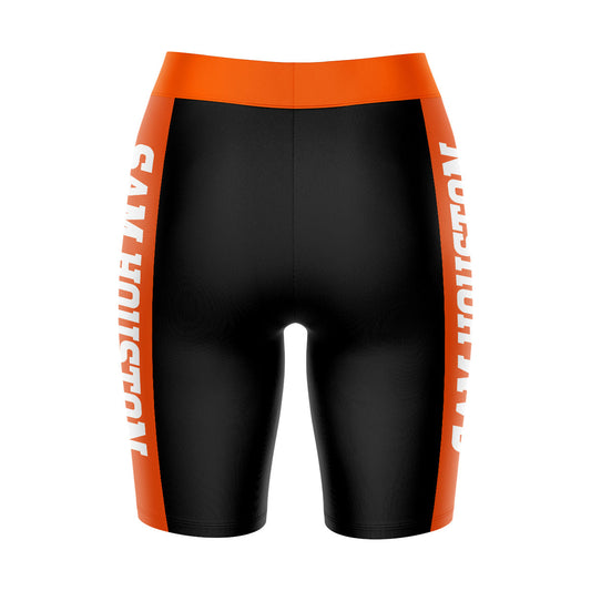 Sam Houston Bearkats Game Day Logo on Waistband and Orange Stripes Black Womens Bike Shorts by Vive La Fete