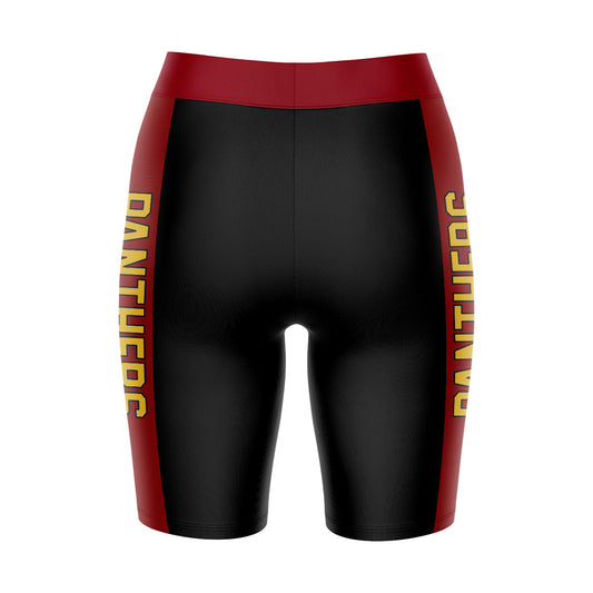 SAC City Panthers Game Day Logo on Waistband and Maroon Stripes Black Womens Bike Shorts by Vive La Fete