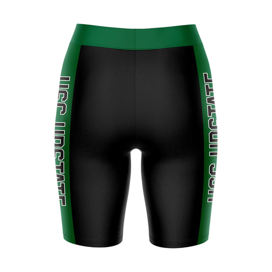 USC Upstate Spartans Game Day Logo on Waistband and Green Stripes Black Womens Bike Shorts by Vive La Fete