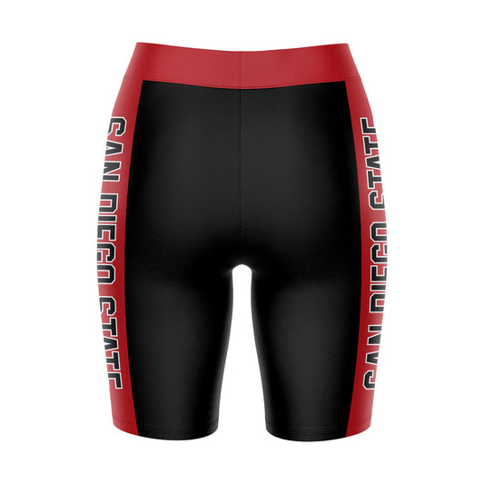 San Diego State Aztecs SDSU Game Day Logo on Waistband and Red Stripes Black Womens Bike Shorts by Vive La Fete