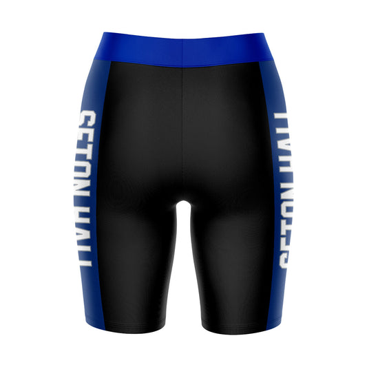 Seton Hall Pirates Game Day Logo on Waistband and Blue Stripes Black Womens Bike Shorts by Vive La Fete