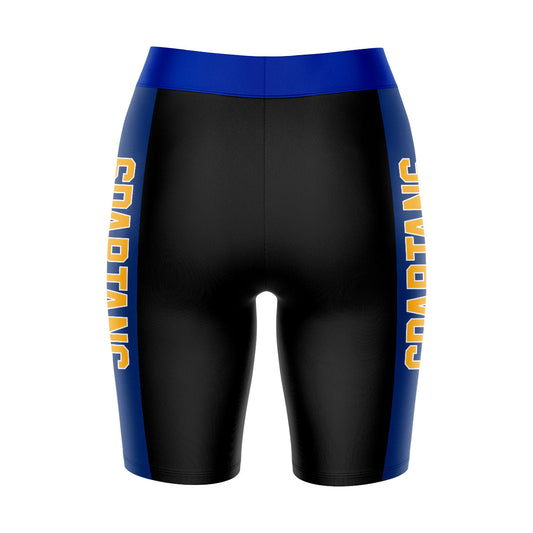 San Jose State Spartans Game Day Logo on Waistband and Blue Stripes Black Womens Bike Shorts by Vive La Fete