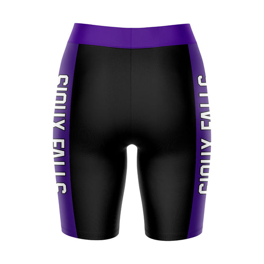 Sioux Falls Cougars USF Game Day Logo on Waistband and Purple Stripes Black Womens Bike Shorts by Vive La Fete