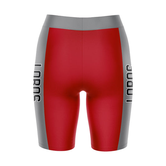 New Mexico Lobos UNM Game Day Logo on Waistband and Gray Stripes Red Womens Bike Shorts by Vive La Fete