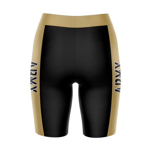 Army West Point Cadets Game Day Logo on Waistband and Gold Stripes Black Womens Bike Shorts by Vive La Fete