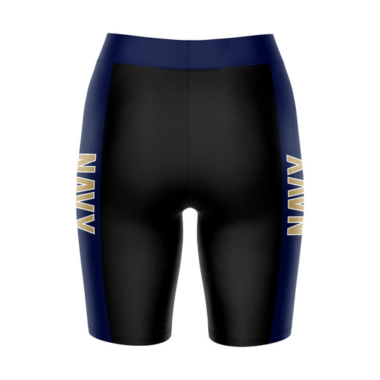 US Naval Naval Academy Game Day Logo on Waistband and Navy Stripes Black Womens Bike Shorts by Vive La Fete
