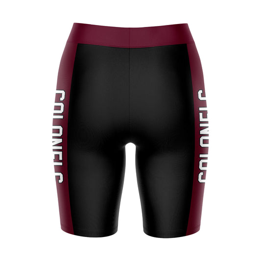 Eastern Kentucky Colonels EKU Game Day Logo on Waistband and Maroon Stripes Black Womens Bike Shorts by Vive La Fete