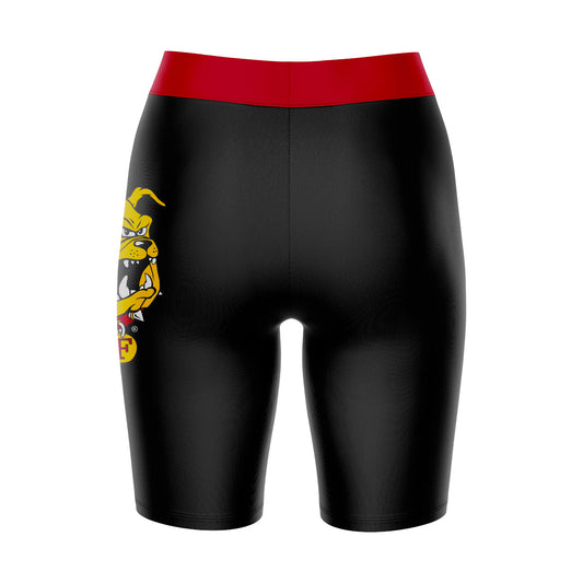 Ferris State Bulldogs Game Day Logo on Thigh and Waistband Black and Red Womens Bike Shorts by Vive La Fete
