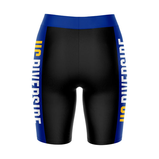 UC Riverside The Highlanders Game Day Logo on Waistband and Blue Stripes Black Womens Bike Shorts by Vive La Fete