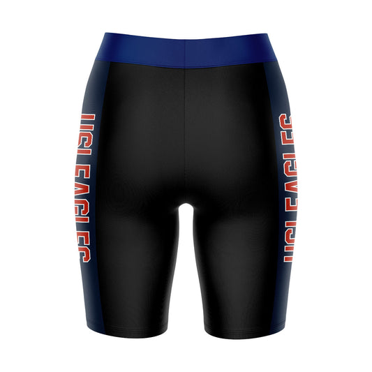 Southern Indiana Screaming Eagles Game Day Logo on Waistband & Blue Stripes Black Womens Bike Shorts by Vive La Fete