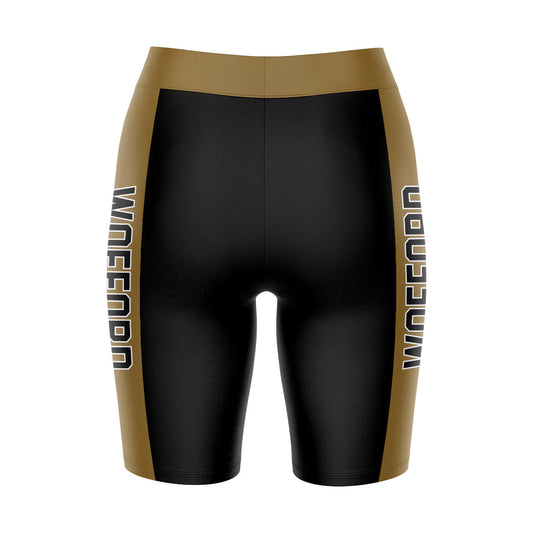 Wofford Terriers Game Day Logo on Waistband and Gold Stripes Black Womens Bike Shorts by Vive La Fete