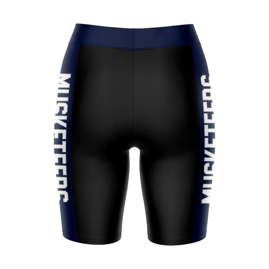 Xavier University Muskateers Game Day Logo on Waistband and Navy Stripes Black Womens Bike Shorts by Vive La Fete