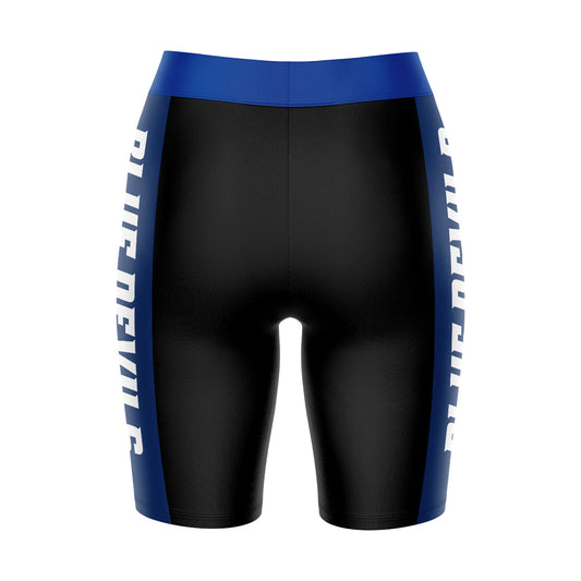 CCSU Blue Devils Game Day Logo on Waistband and Blue Stripes Black Womens Bike Shorts by Vive La Fete