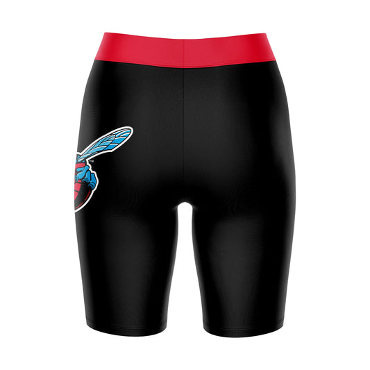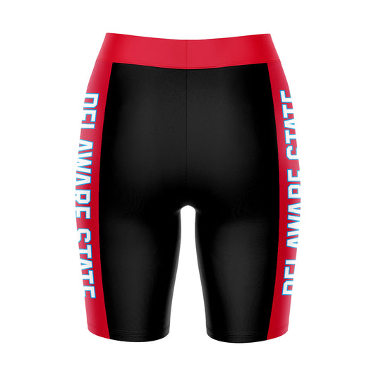 Delaware State Hornets Game Day Logo on Thigh and Waistband Black and Red Womens Bike Shorts by Vive La Fete