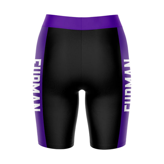 Furman Paladins Logo on Waistband and Purple Stripes Black Womens Bike Shorts by Vive La Fete