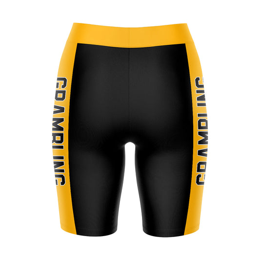 Grambling State Tigers GSU Game Day Logo on Waistband and Gold Stripes Black Womens Bike Shorts by Vive La Fete