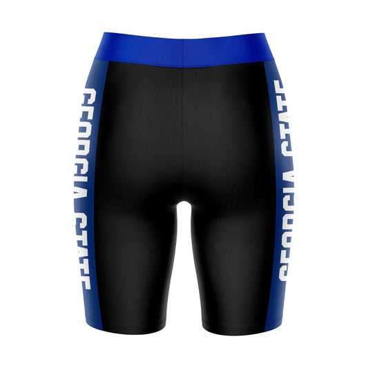 Georgia State Panthers Game Day Logo on Waistband and Blue Stripes Black Womens Bike Shorts by Vive La Fete