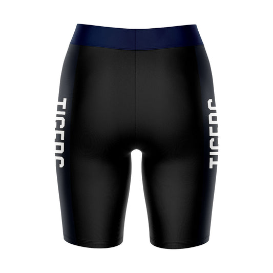 Jackson State Tigers JSU Game Day Logo on Waistband and Navy Stripes Black Womens Bike Shorts by Vive La Fete
