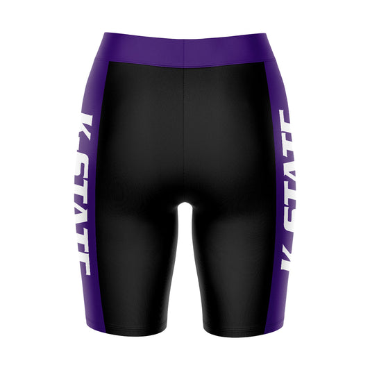 Kansas State Wildcats KSU K-State Logo on Waistband and Purple Stripes Black Womens Bike Shorts by Vive La Fete