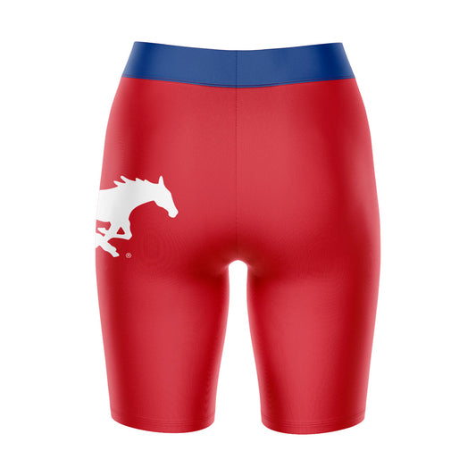 SMU Mustangs Game Day Logo on Thigh and Waistband Red and Blue Womens Bike Shorts by Vive La Fete