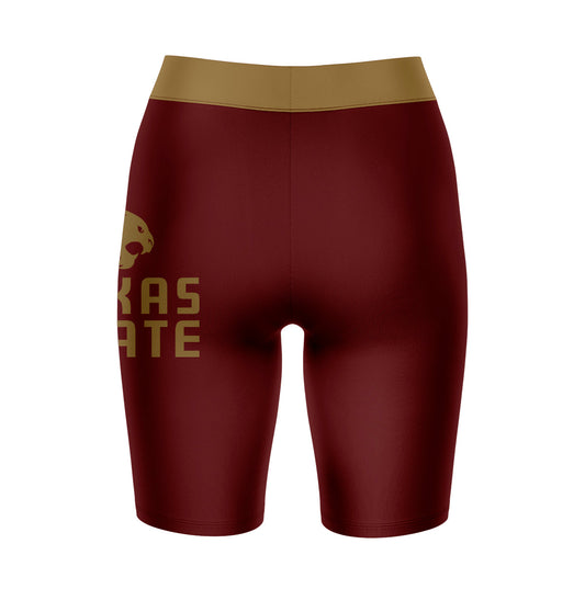 TXST Texas State Bobcats Game Day Logo on Thigh and Waistband Maroon and Gold Womens Bike Shorts by Vive La Fete