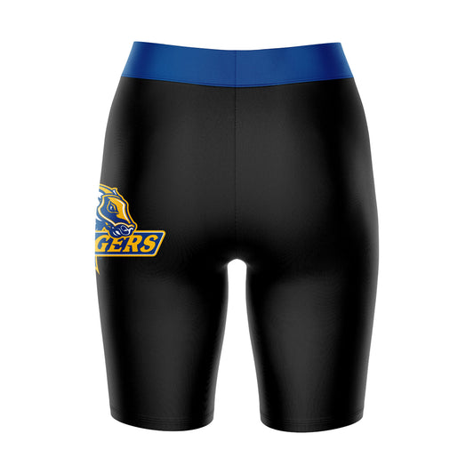 UW Wisconsin Stout Blue Devils Game Day Logo on Thigh and Waistband Black & Navy Womens Bike Shorts by Vive La Fete