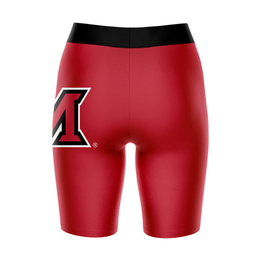 Miami Ohio RedHawks Game Day Logo on Thigh and Waistband Red and Black Womens Bike Shorts by Vive La Fete