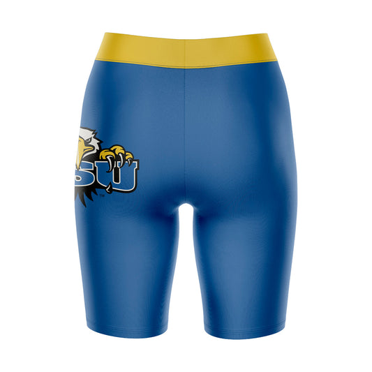 Morehead State Eagles Game Day Logo on Thigh and Waistband Blue and Gold Womens Bike Shorts by Vive La Fete