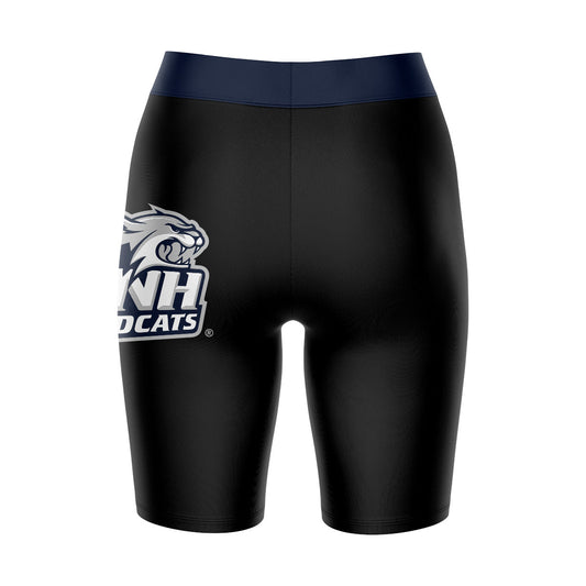 New Hampshire Wildcats UNH Game Day Logo on Thigh and Waistband Black and Navy Womens Bike Shorts by Vive La Fete