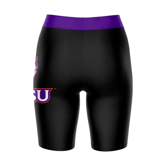 NSU Demons Game Day Logo on Thigh and Waistband Black and Purple Womens Bike Shorts by Vive La Fete