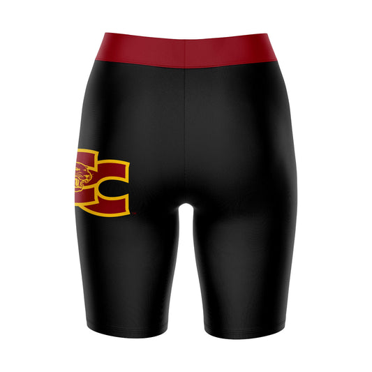 SAC City Panthers Game Day Logo on Thigh and Waistband Black and Maroon Womens Bike Shorts by Vive La Fete