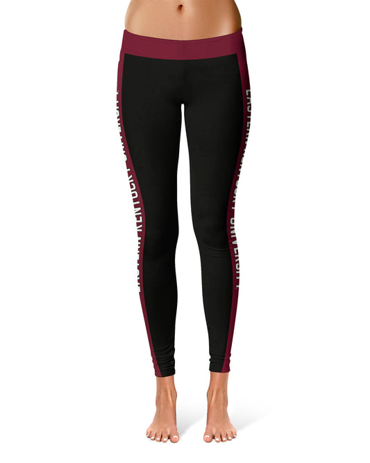 Eastern Kentucky Colonels EKU Game Day Maroon Stripes Black Yoga Leggings for Women by Vive La Fete