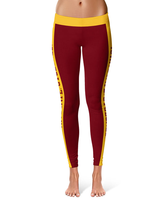 Iowa State Cyclones ISU Game Day Gold Stripes Maroon Yoga Leggings for Women by Vive La Fete
