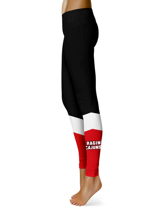 Louisiana at Lafayette Cajuns Game Day Ankle Color Block Black Red Yoga Leggings for Women by Vive La Fete