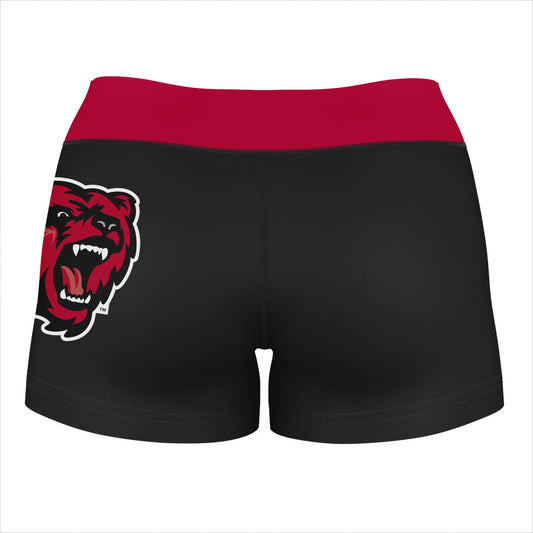 Bridgewater State Bears Logo on Thigh & Waistband Black & Red Womens Yoga Booty Workout Shorts by Vive La Fete