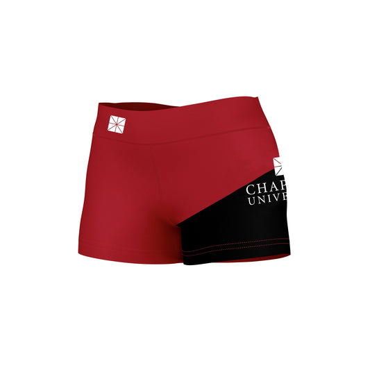 Chapman University Panthers Game Day Collegiate Leg Color Block Red Black Optimum Womens Yoga Shorts by Vive La Fete