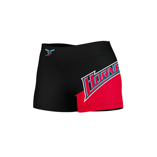 Delaware State Hornets Game Day Collegiate Leg Color Block Red Black Optimum Womens Yoga Shorts by Vive La Fete