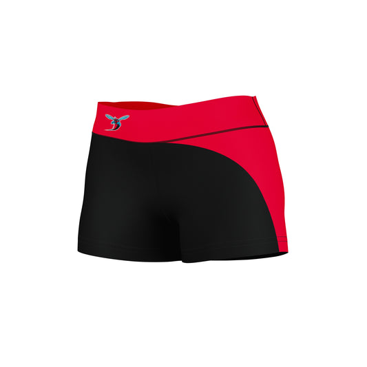 Delaware State Hornets Game Day Collegiate Waist Color Block Black Red Optimum Womens Yoga Shorts by Vive La Fete