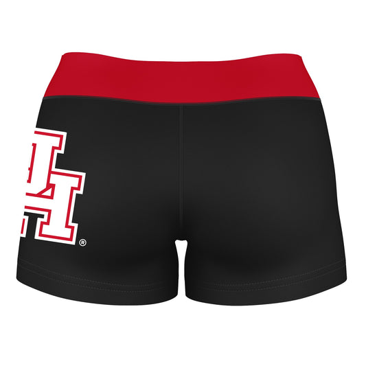 Houston Cougars Logo on Thigh and Waistband Black & Red Womens Yoga Booty Workout Shorts by Vive La Fete