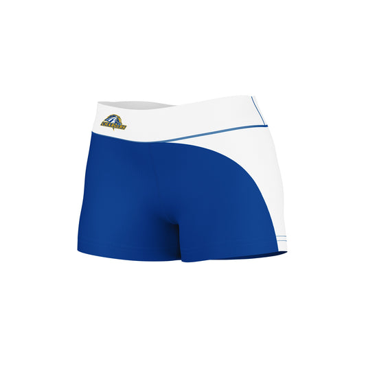 New Haven Chargers Collegiate Waist Color Block Blue White Optimum Womens Yoga Shorts by Vive La Fete