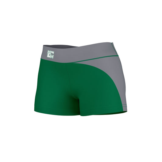 ENMU Eastern New Mexico Greyhounds Collegiate Waist Color Block Green Gray Optimum Womens Yoga Shorts by Vive La Fete