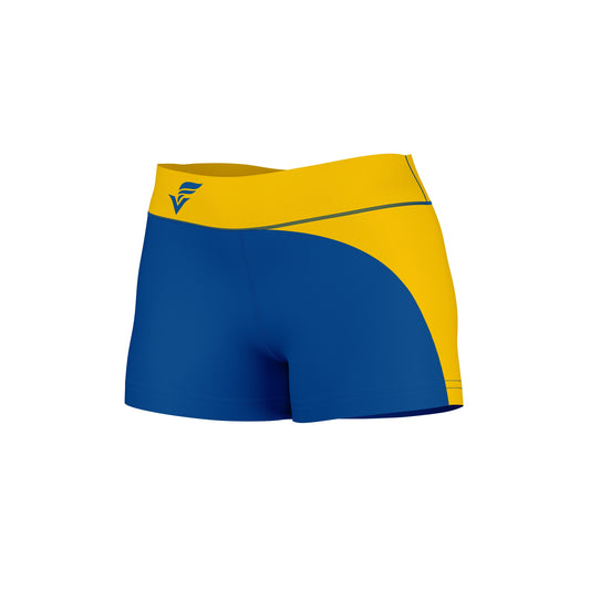 Fort Valley State Wildcats FVSU Collegiate Waist Color Block Blue Gold Optimum Womens Yoga Shorts by Vive La Fete