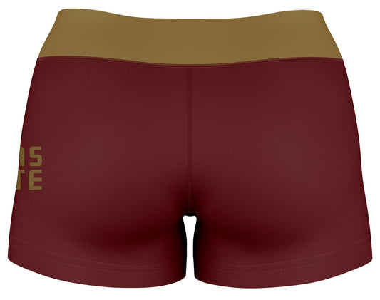TXST Texas State Bobcats Logo on Thigh & Waistband Maroon Gold Womens Yoga Booty Workout Shorts by Vive La Fete