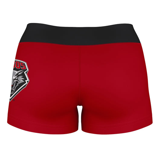 New Mexico Lobos Logo on Thigh & Waistband Red Black Womens Yoga Booty Workout Shorts by Vive La Fete