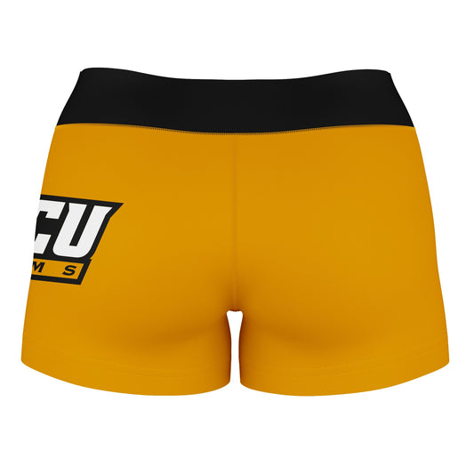 VCU Rams Virginia Commonwealth Logo on Thigh & Waistband Maroon Gold Black Womens Yoga Booty Workout Shorts by Vive La Fete