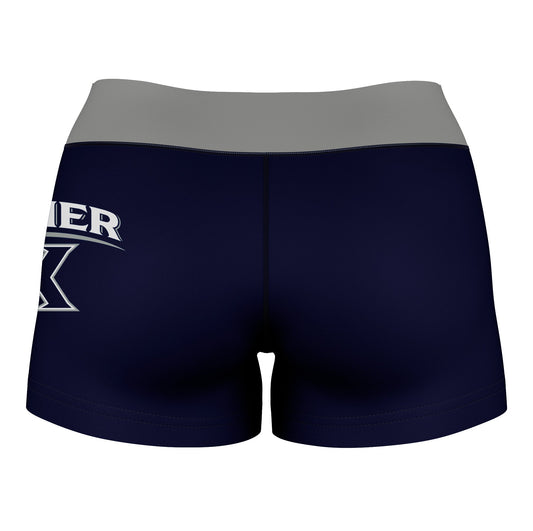 Xavier Musketeers Logo on Thigh & Waistband Blue Gray Womens Yoga Booty Workout Shorts by Vive La Fete